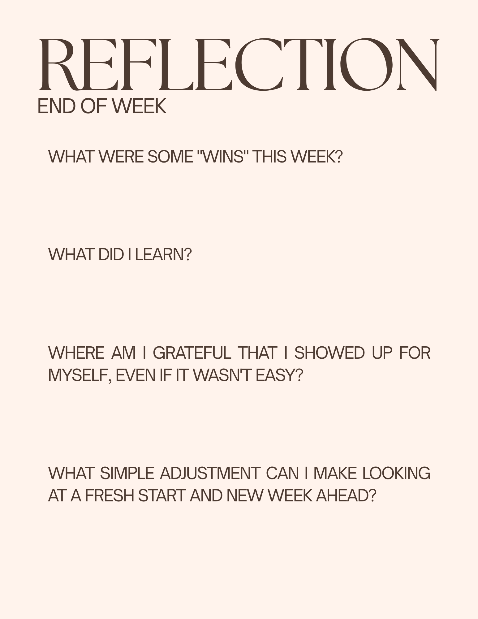 Progress The Well Complete & Continue Next Lesson Learn More DAILY RESOURCES - CHECK DAILY 3 Lessons Daily Journal, a daily practice 10 min. morning mobility Daily Checklist WEEKLY RESOURCES - CHECK WEEKLY 3 Lessons Weekly Journal - Beginning of the Week Prompts Weekly Checklist Weekly Journal - End of the Week Prompts WEEK 1 - MOVEMENT + MEDITATION + NOURISHMENT 4 Lessons Monday Movement - Essentials Monday Meditation - Reset Wednesday Movement - Yoga + Weights Nourishment - Grocery List and Recipe MONTHLY RESOURCES 2 Lessons Monthly Checklist Full Moon Rituals EDUCATIONAL RESOURCES 3 Lessons Meditation Benefits Breathwork Benefits Anti-Inflammatory Nourishment The Well Complete & Continue Next Lesson Learn More WEEKLY RESOURCES - CHECK WEEKLY Weekly Journal - End of the Week Prompts